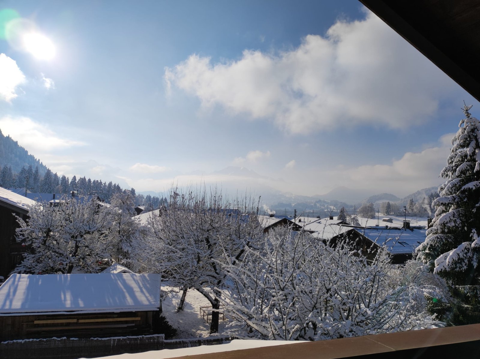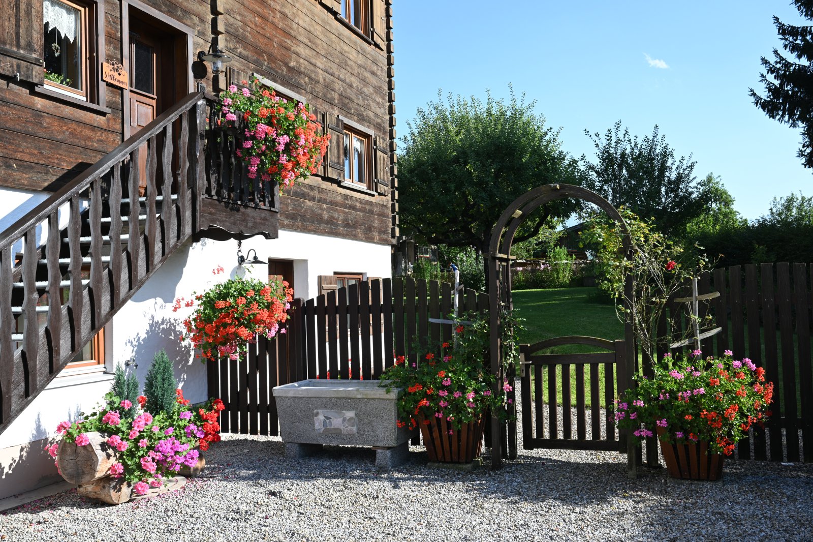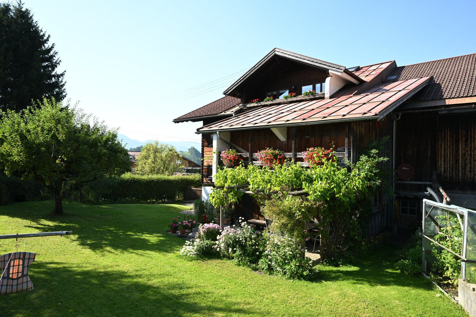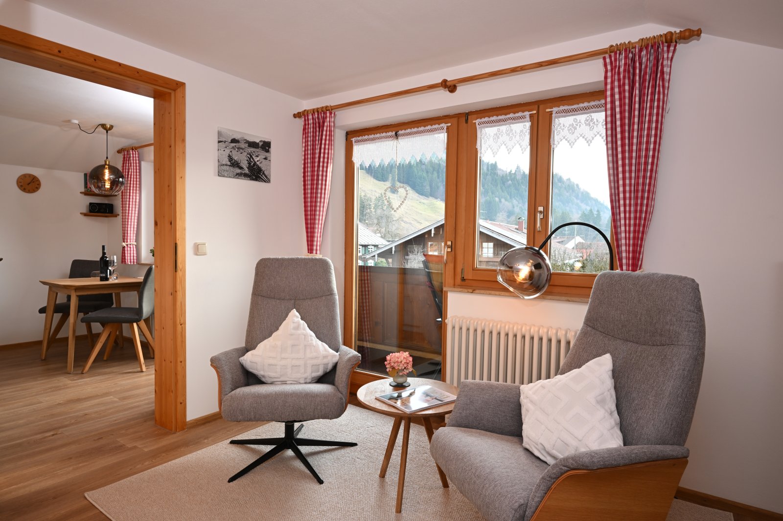Große Fenster durchfluten die Zimmer mit viel Licht und ermöglichen einen freien Blick über Wald, Wiesen und Berge bis hin zum kleinen Walsertal und machen so schon das Aufwachen zum Erlebnis.